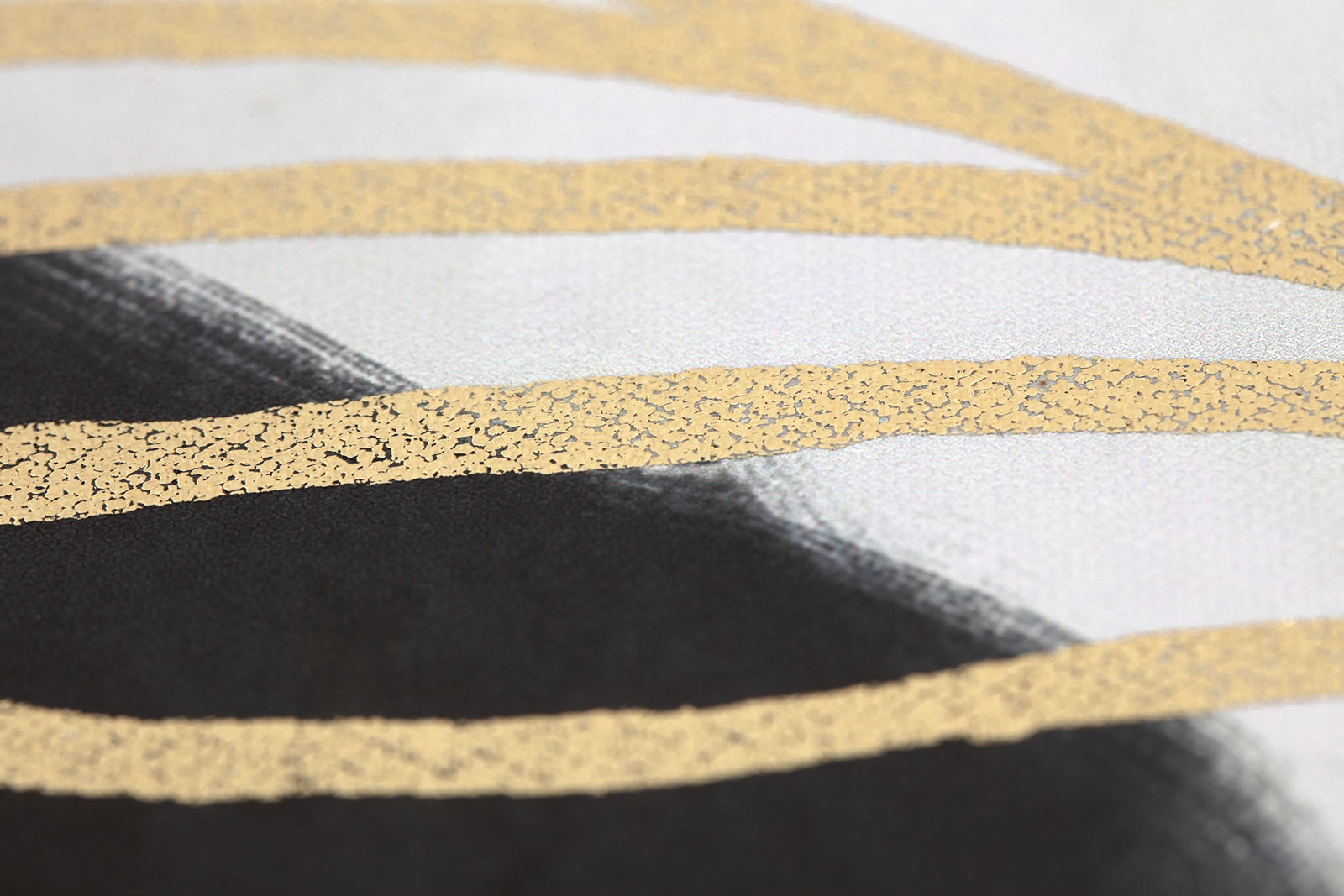 Large abstract artwork. Printed canvas with matt black frame and machined gold ofil print design. Please note that the dimensions are for the canvas only and exclude frames which typically add an extra 2-4 cm on top. Couples perfectly with