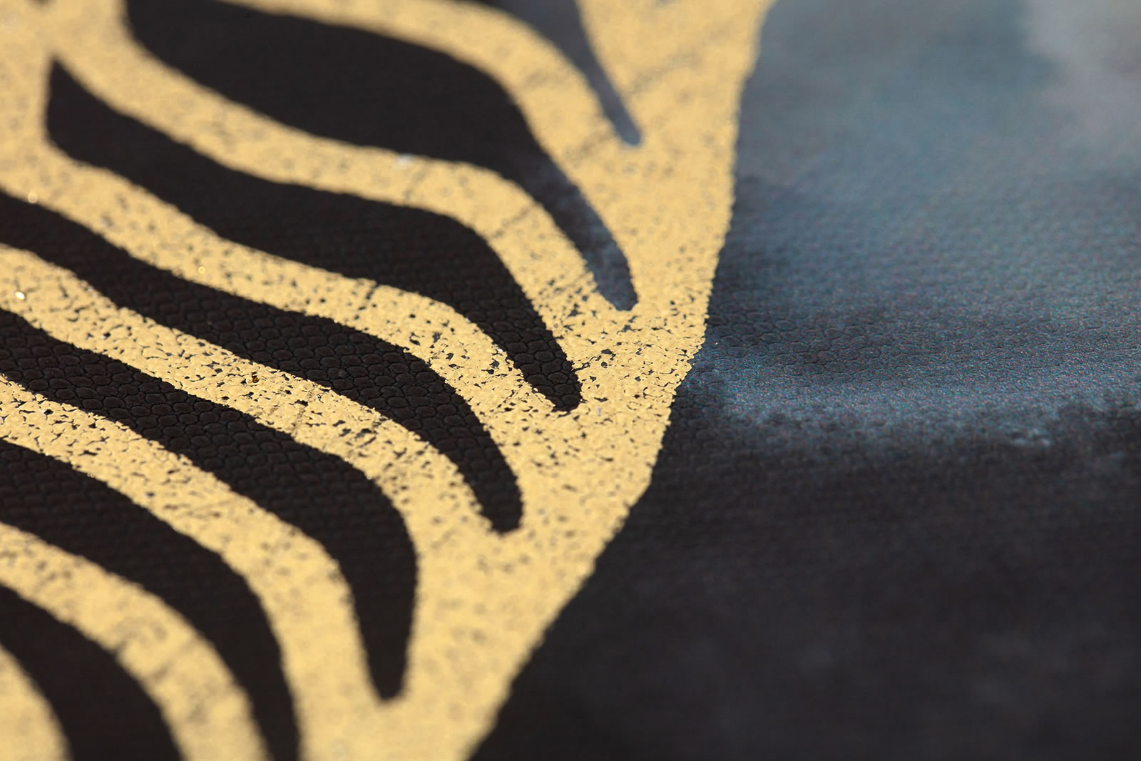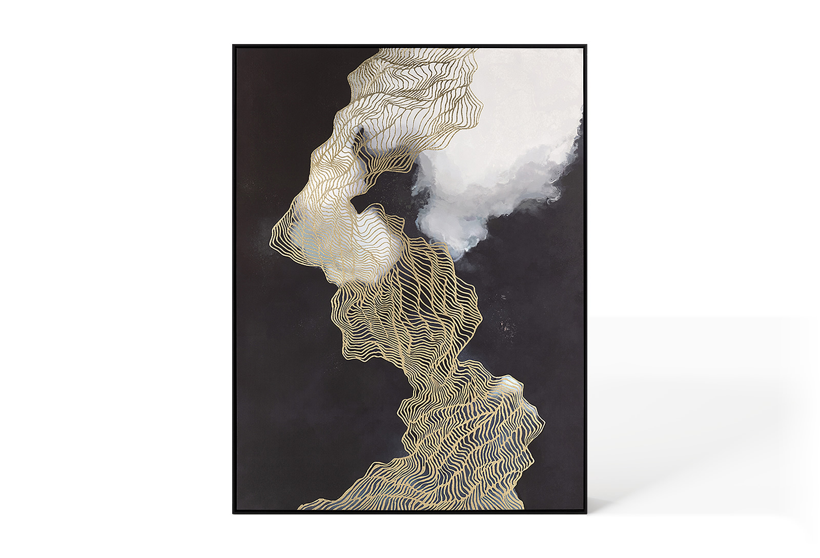 Large abstract artwork. Printed canvas with matt black frame and machined gold ofil print design. Please note that the dimensions are for the canvas only and exclude frames which typically add an extra 2-4 cm on top. Couples perfectly with