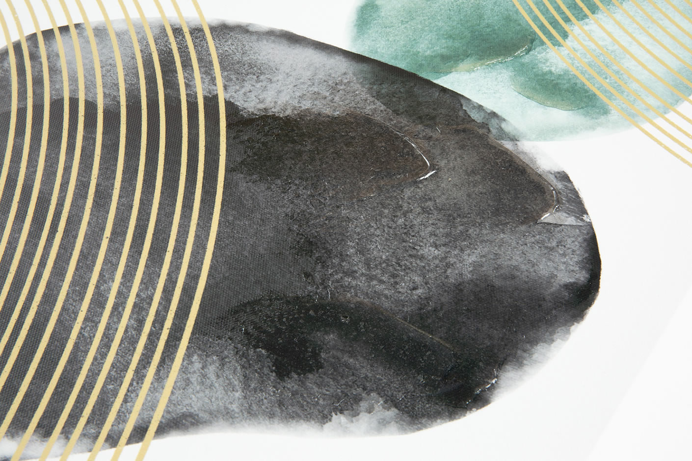 Set of 2 hand-finished prints.. These modern abstract prints are hand finished, with no two the same and include beautiful paint strokes and gold leaf. Please note that the dimensions are for the oil on canvas only and exclude frames which typically add an extra 1-2 cm on top.
