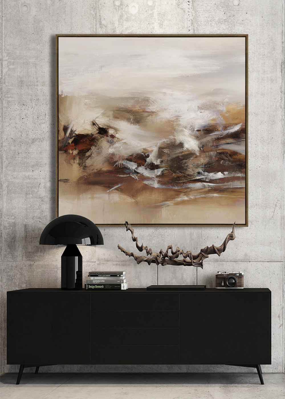 Large framed heavy texture abstract print finished on hessian. This modern abstract print is hand finished, with no two the same, and has beautiful paint strokes and pallette knife textures. Please note that the dimensions are for the oil on canvas only and exclude frames which typically add an extra 1-2 cm on top.