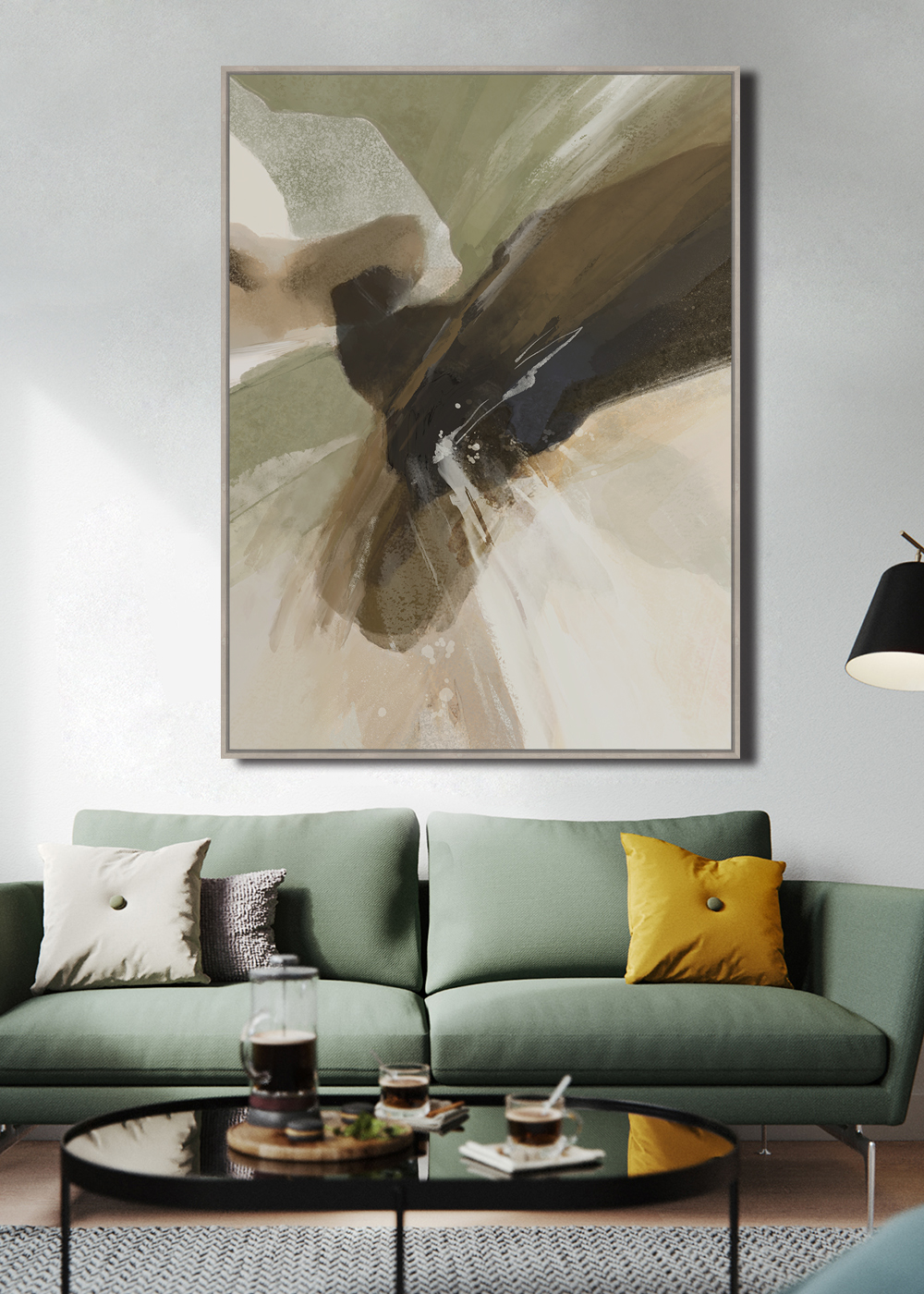 Hand Painted Canvas with Light Nature Frame. This modern abstract print is hand finished, with no two the same, and has beautiful paint strokes and pallette knife textures. Please note that the dimensions are for the canvas only and exclude frames which typically add an extra 1-2 cm on top.