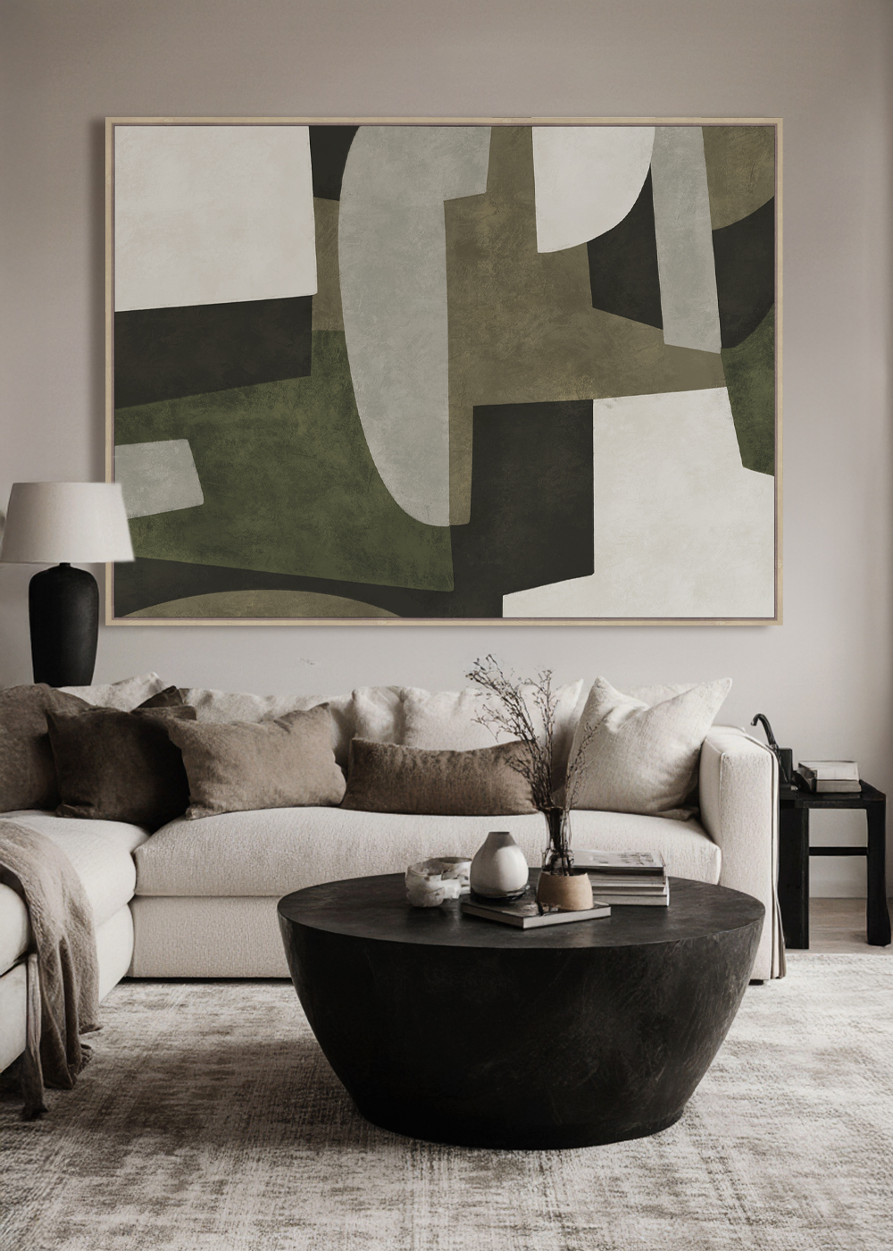 Hand Painted Canvas with Nature Bamboo Frame. This modern abstract print is hand finished, with no two the same, and has beautiful paint strokes and pallette knife textures. Please note that the dimensions are for the canvas only and exclude frames which typically add an extra 1-2 cm on top.