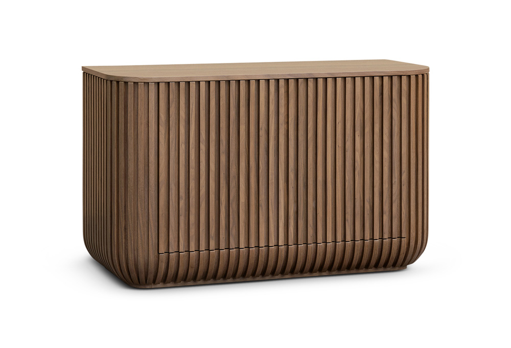 The Jupiter 4-Door Sideboard comes in a wlanut coloured veneer. The Jupiter Sideboard can help achieve the perfect finish in any home or interior design project.