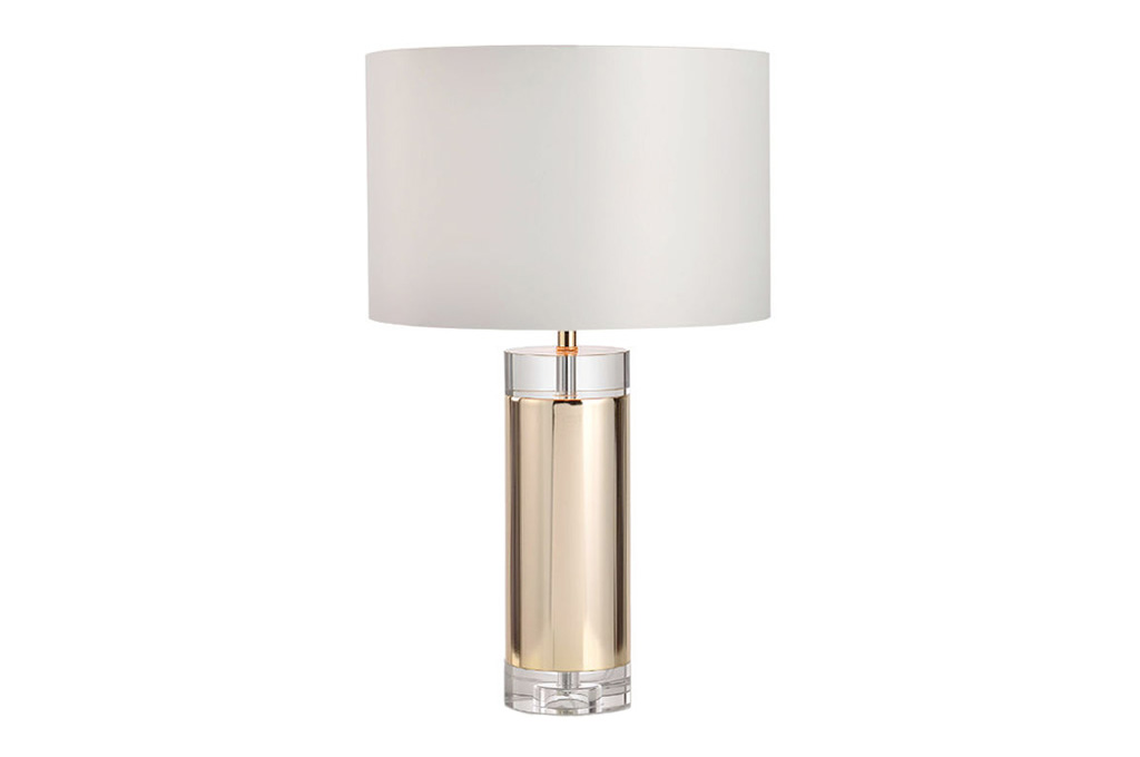 The Lyon Table Lamp can add a touch of luxury to any room. It features a brass base and smoked crystal stand, complimented by a soft natural coloured shade. The Lyon Table Lamp can help create the perfect finish in any home or interior design project.