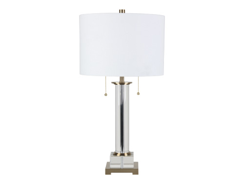 The Merlo Table Lamp can add a touch of luxury to any room. It features a brass and crystal base, complimented by a soft natural coloured shade. The Merlo Table Lamp can help create the perfect finish in any home or interior design project.