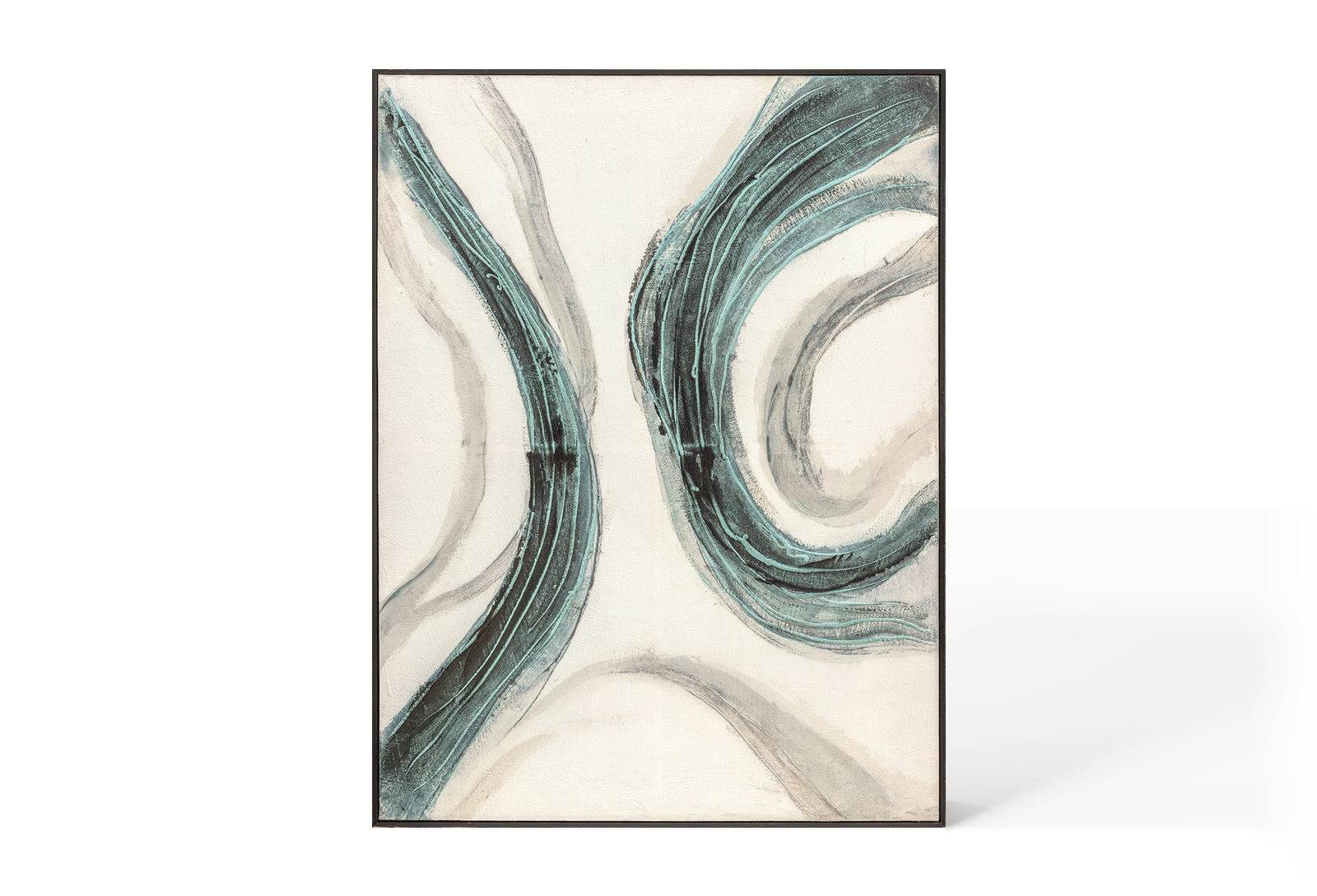 Large abstract painting. Oil on canvas with black frame. This modern abstract painting is hand finished, with no two the same and beautiful palette knife textures. Please note that the dimensions are for the oil on canvas only and exclude frames which typically add an extra 3-6 cm on top.
