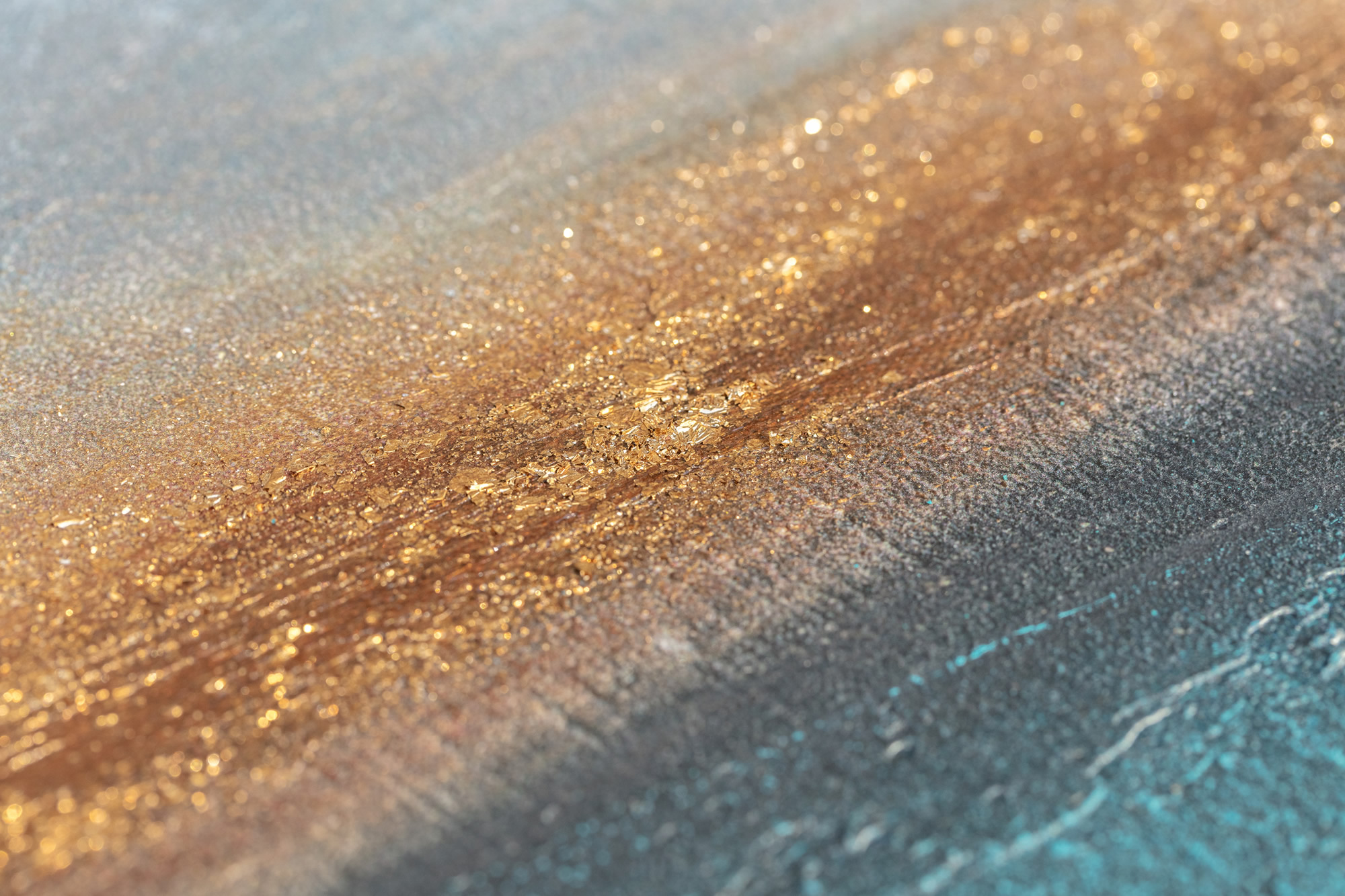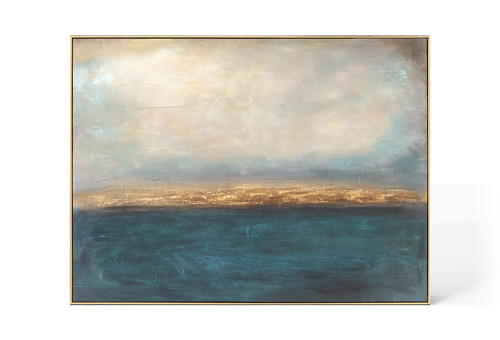 Large abstract painting. Oil on canvas with gold frame. This modern abstract painting is hand finished, with no two the same, complete with beautiful palette knife textures and gold leaf. Please note that the dimensions are for the oil on canvas only and exclude the frame which typically adds an additional 1.5 cm on top.