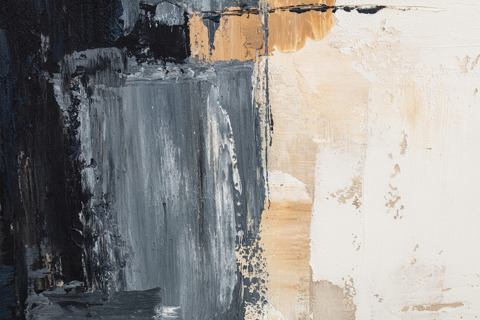 Large abstract painting. Oil on canvas with brown frame. This modern abstract painting is hand finished, with no two the same, complete with beautiful palette knife textures. Please note that the dimensions are for the oil on canvas only and exclude the frame which typically adds an additional 1.5 cm on top.