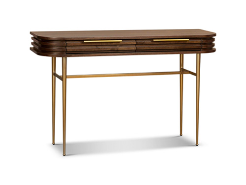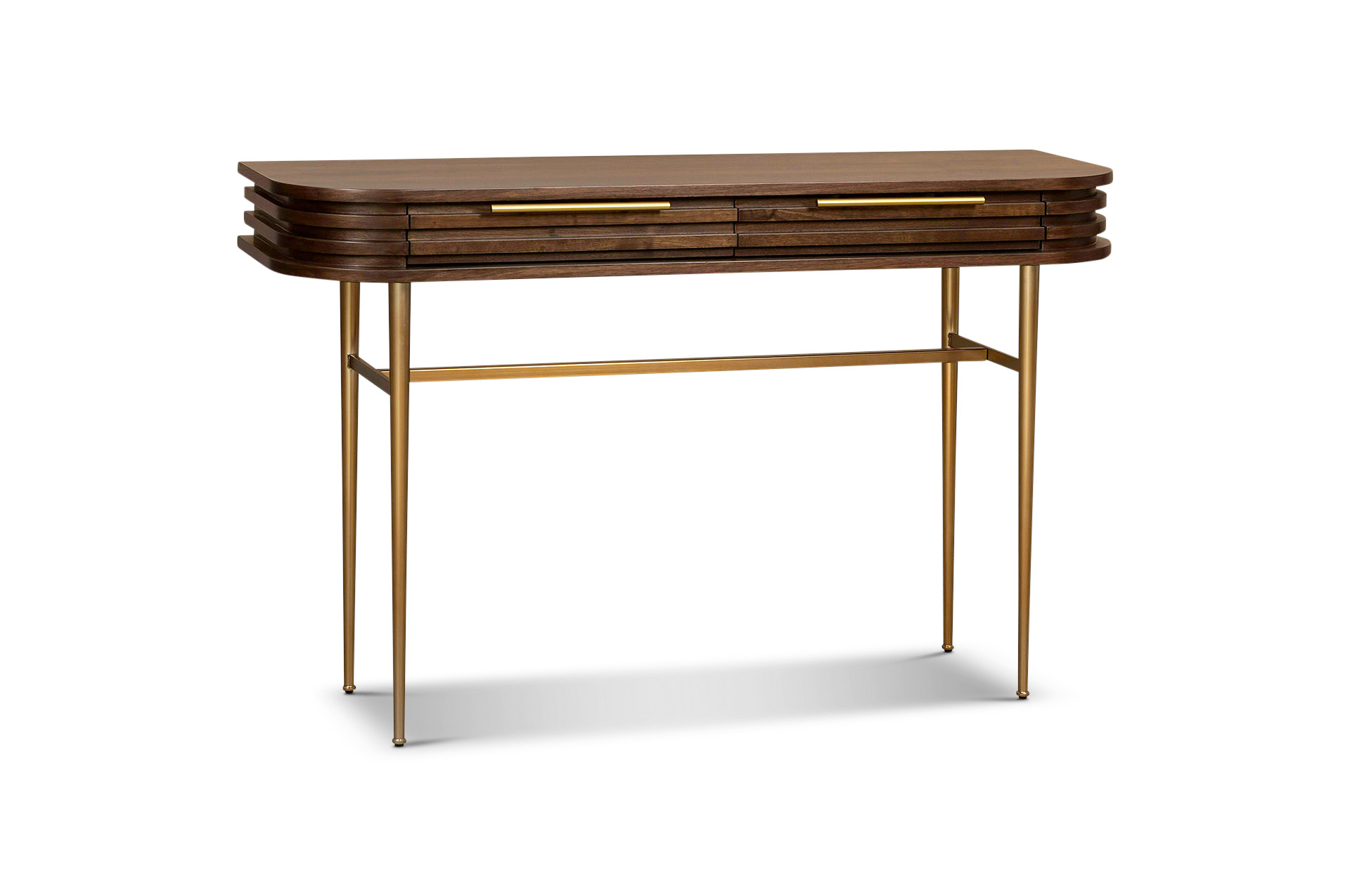 Inspired by the days of high glamour, the Paris console table with 2-Drawers is a modern twist on mid 19th century Art Deco. Beautifully finished in natural walnut veneer, the Paris console has 2-drawers with brass handles and legs. The Paris console can help achieve the perfect finish in a any home or interior design project.