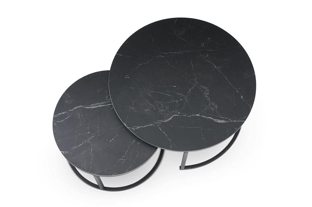 The Soho Nested Coffee Table has a black marble style ceramic top with a black base. This nested coffee table can help you achieve the perfect finish in any home or interior design project.