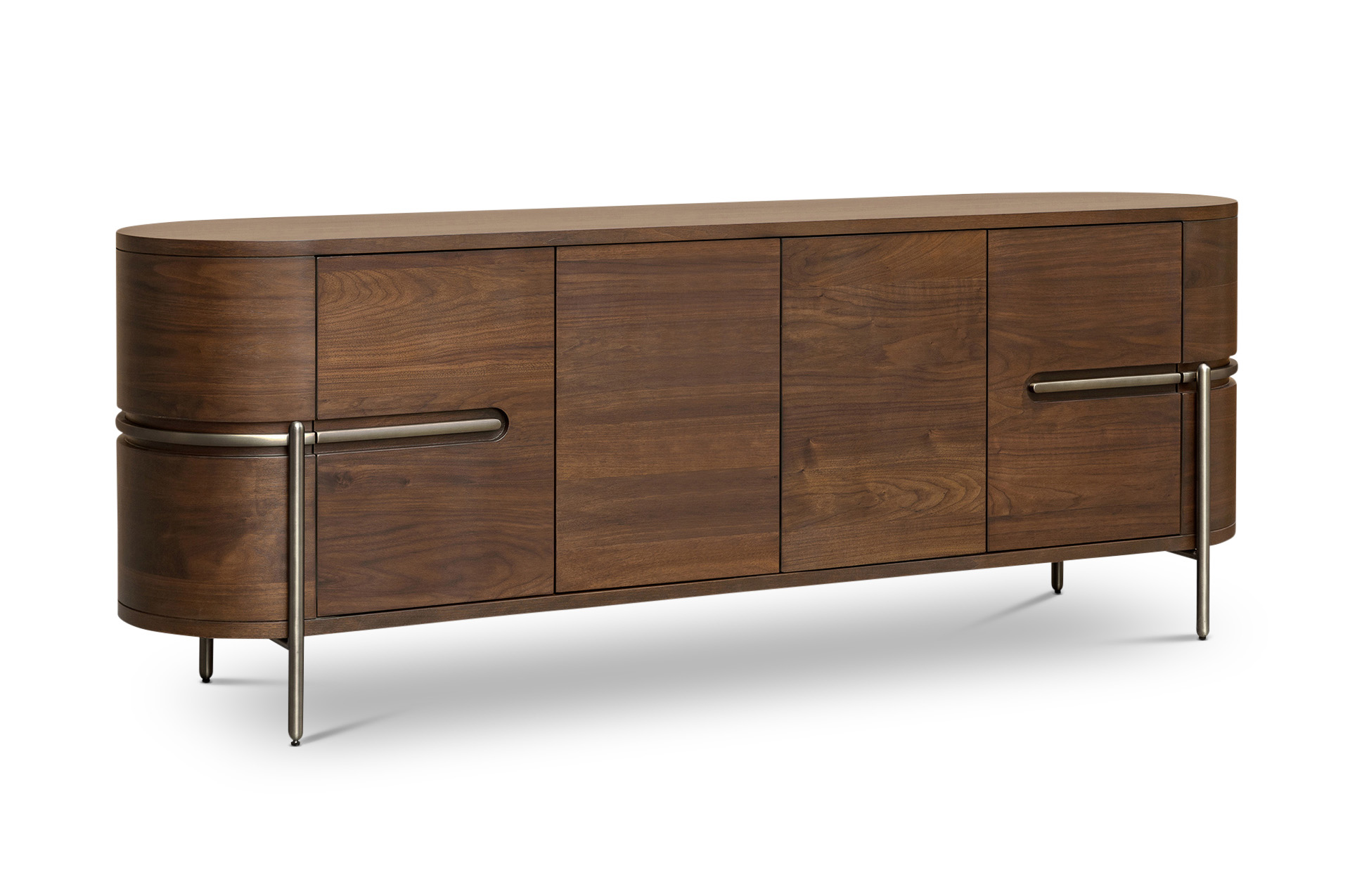The Vienna Sideboard comes in a natural walnut veneer, with brushed brass trim. The Vienna Sideboard can you help achieve the perfect finish in any home or interior design project.
