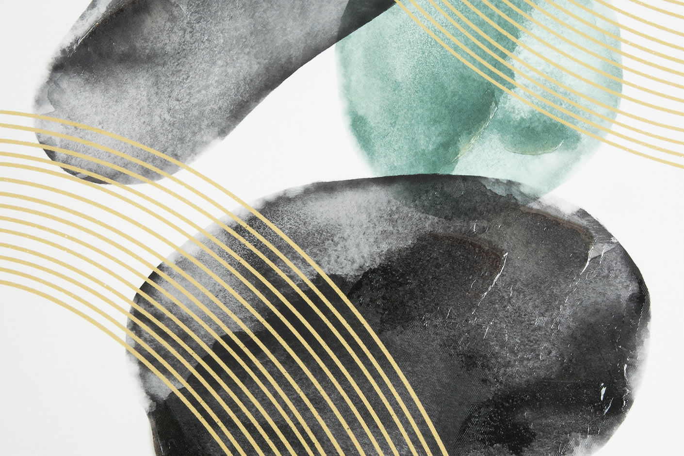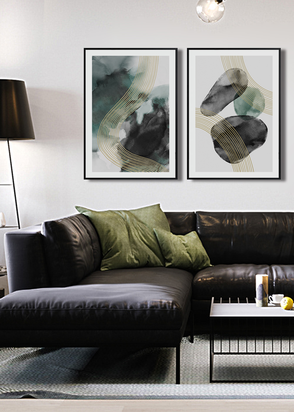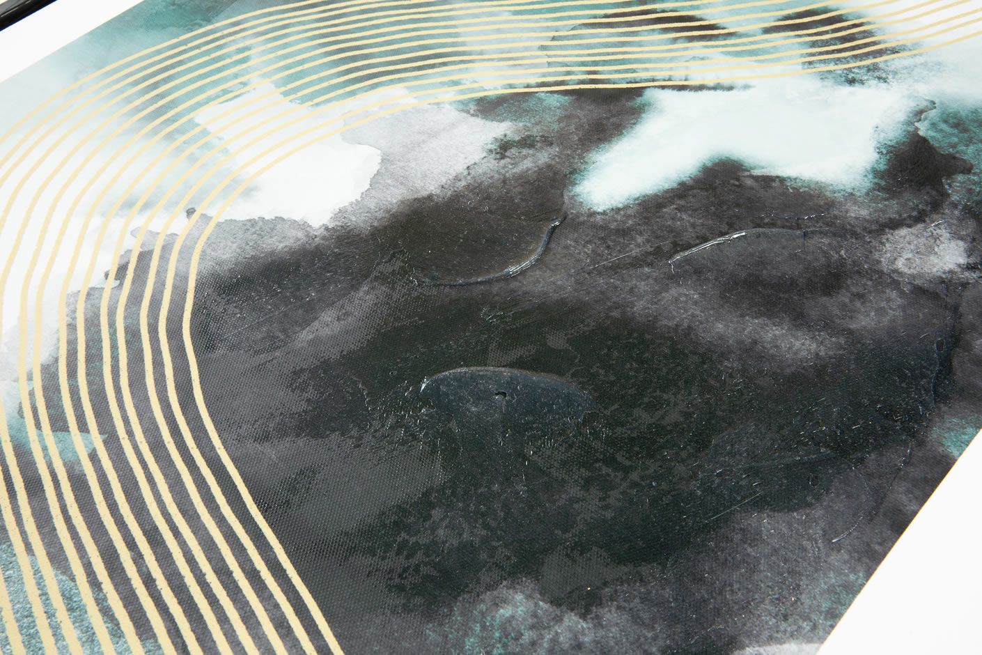 Set of 2 hand-finished prints.. These modern abstract prints are hand finished, with no two the same and include beautiful paint strokes and gold leaf. Please note that the dimensions are for the oil on canvas only and exclude frames which typically add an extra 1-2 cm on top.