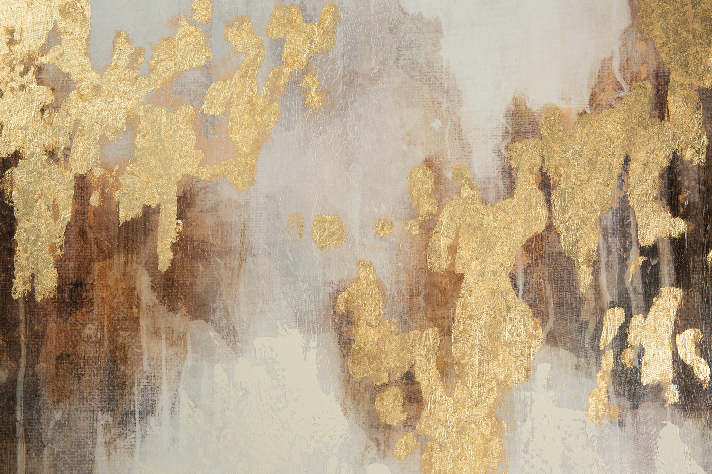 Large framed abstract print finished with oil on canvas. This modern abstract print is hand finished, with no two the same, and has beautiful paint strokes and gold leaf finish. Please note that the dimensions are for the oil on canvas only and exclude frames which typically add an extra 1-2 cm on top.