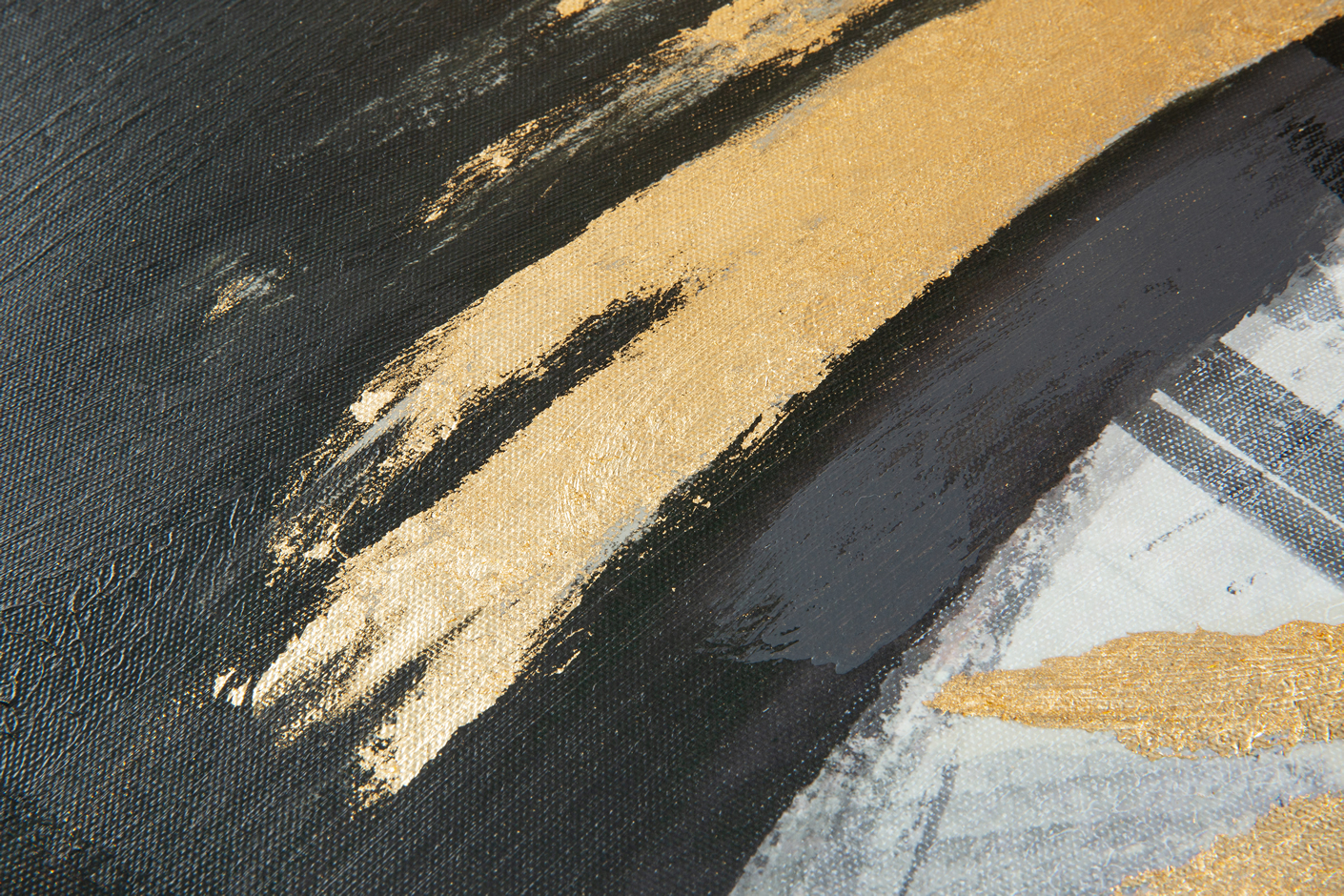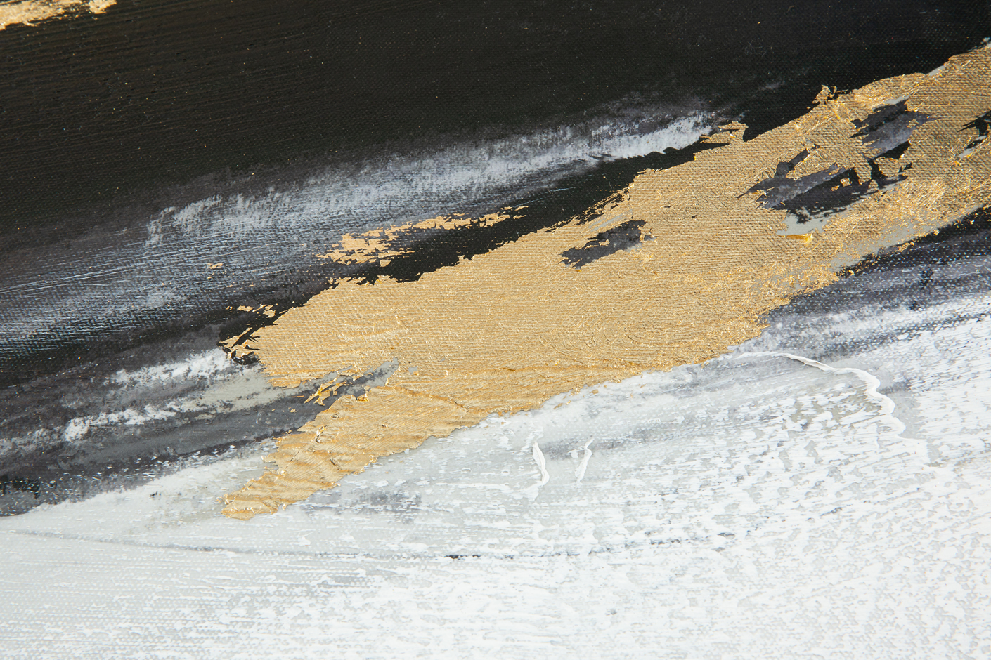 Set of 3 hand-finished prints. These modern abstract prints are hand finished, with no two the same and include beautiful pallette knife textures and finished in gold leaf. Please note that the dimensions are for the oil on canvas only and exclude frames which typically add an extra 1-2 cm on top.