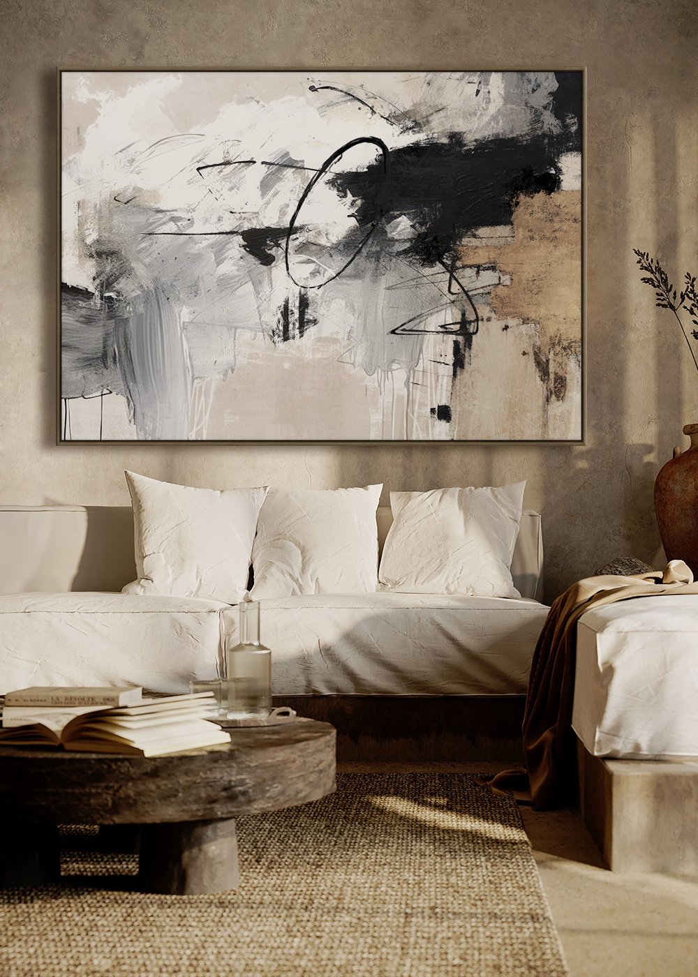 Large framed heavy texture abstract print finished on hessian. This modern abstract print is hand finished, with no two the same, and has beautiful paint strokes and pallette knife textures. Please note that the dimensions are for the oil on canvas only and exclude frames which typically add an extra 1-2 cm on top.