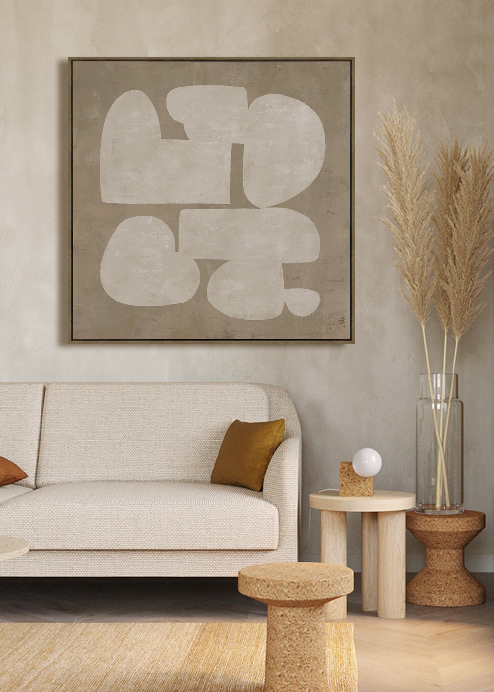 Hand Painted Canvas with Oak Nature Frame. This modern abstract print is hand finished, with no two the same, and has beautiful paint strokes and pallette knife textures. Please note that the dimensions are for the canvas only and exclude frames which typically add an extra 1-2 cm on top.