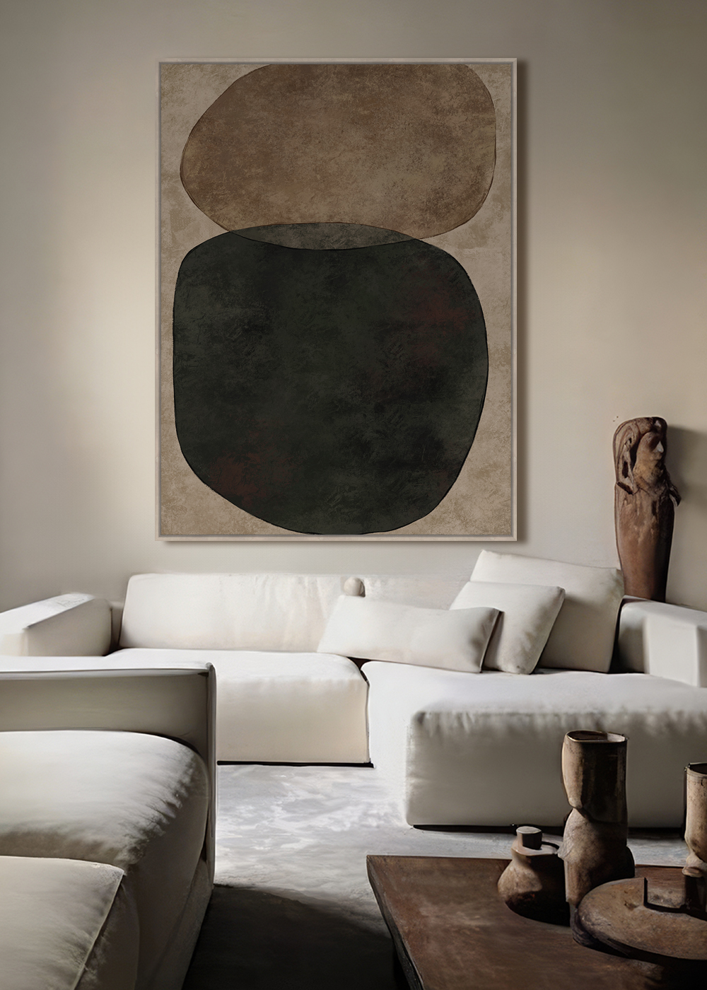 Hand Painted Canvas with Light Nature Frame. This modern abstract print is hand finished, with no two the same, and has beautiful paint strokes and pallette knife textures. Please note that the dimensions are for the canvas only and exclude frames which typically add an extra 1-2 cm on top.