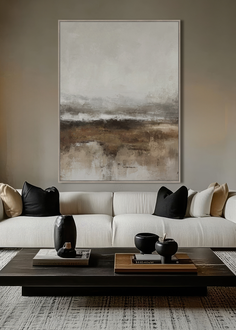 Framed Heavy Textured Painting on Hessian with Light Nature Frame. This modern abstract print is hand finished, with no two the same, and has beautiful paint strokes and pallette knife textures. Please note that the dimensions are for the canvas only and exclude frames which typically add an extra 1-2 cm on top.