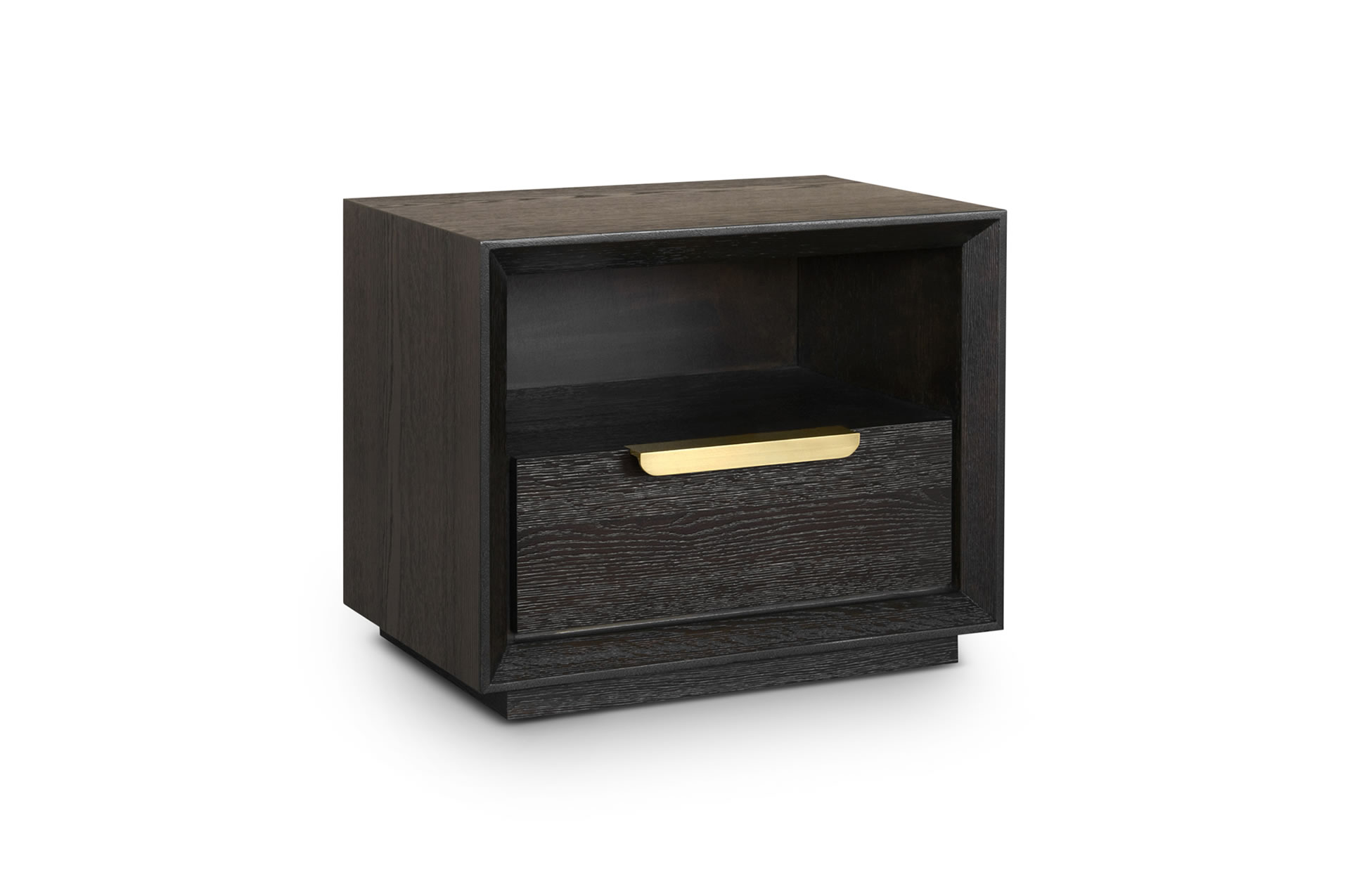 The Aspen Bedside Cabinet comes in a textured coffee oak veneer with brass handles. The Aspen range can help achieve the perfect finish in a any home or interior design project.