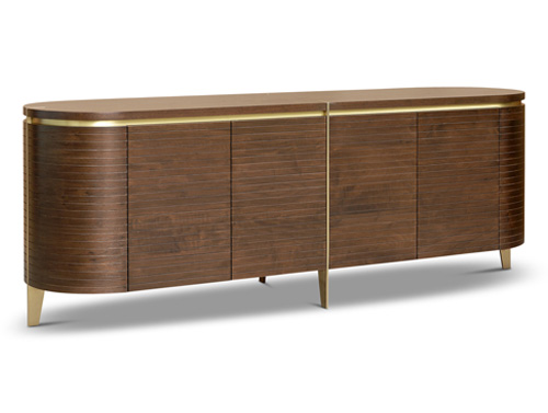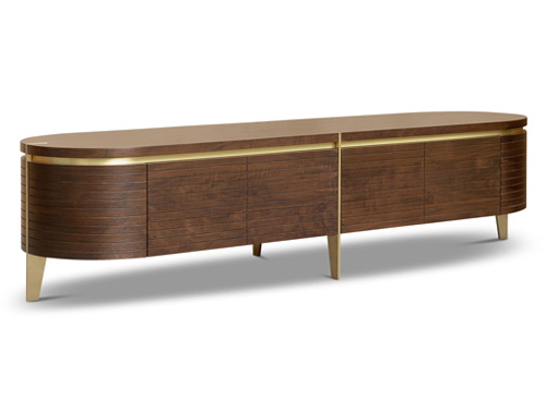 The Malibu Coffee Table is finished in a natural walnut veneer with brass features. Modern with an inspired oval shaped design, the Malibu Coffee Table can help achieve the perfect finish in any home or interior design project.