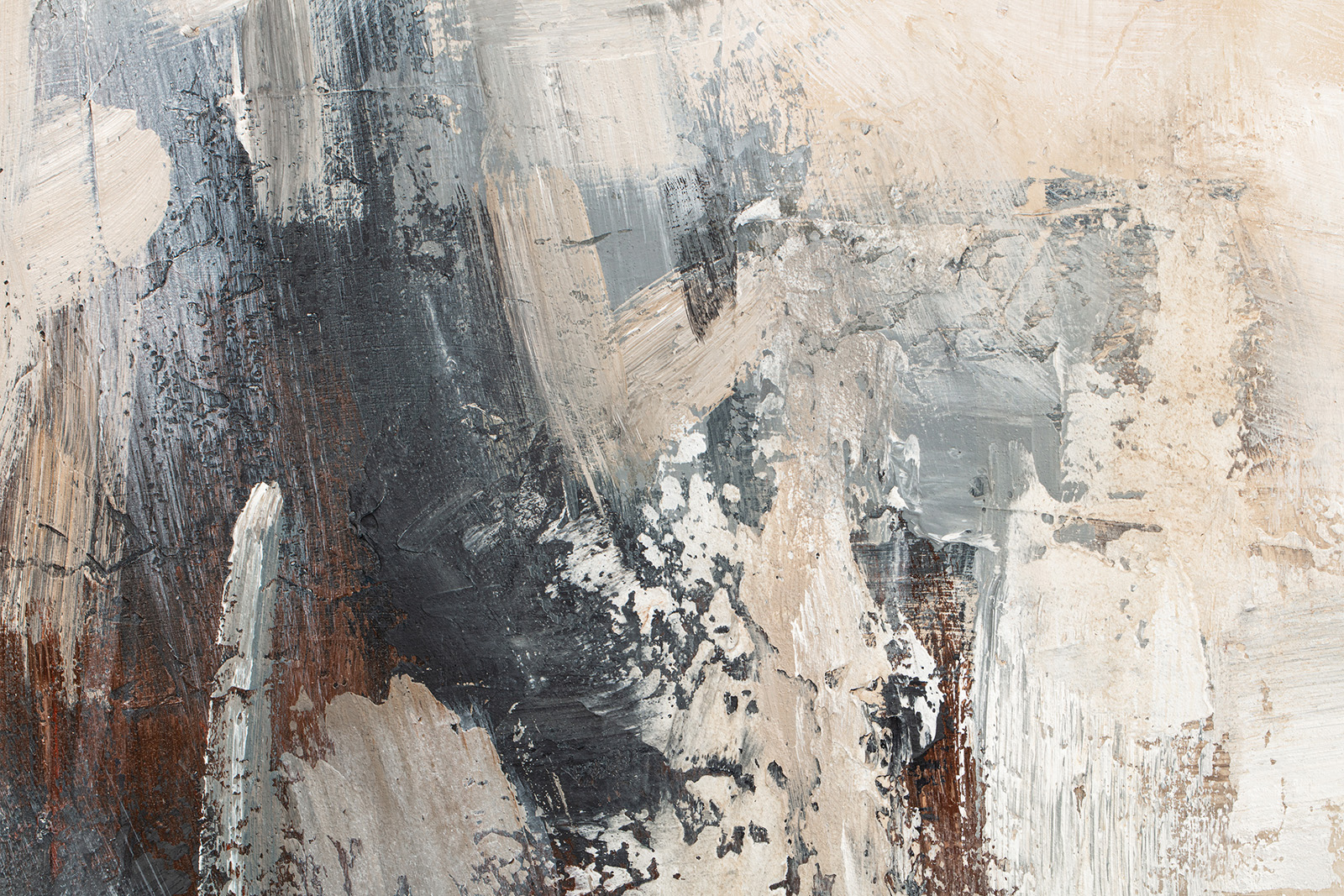 Large abstract painting. Oil on canvas with brown frame. This modern abstract painting is hand finished, with no two the same, complete with beautiful palette knife textures. Please note that the dimensions are for the oil on canvas only and exclude the frame which typically adds an additional 1.5 cm on top.